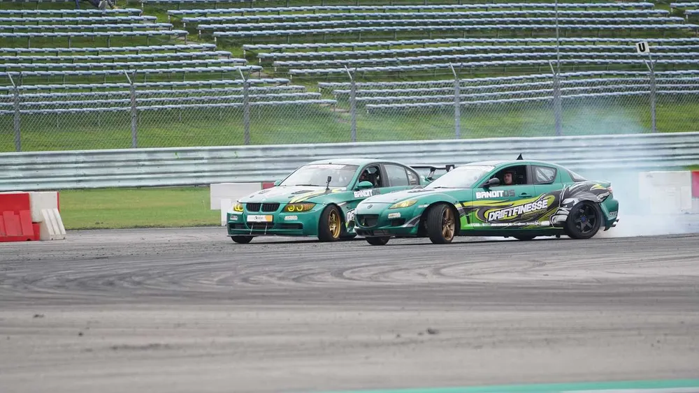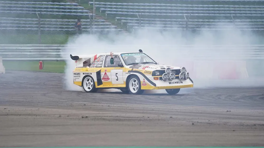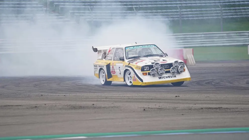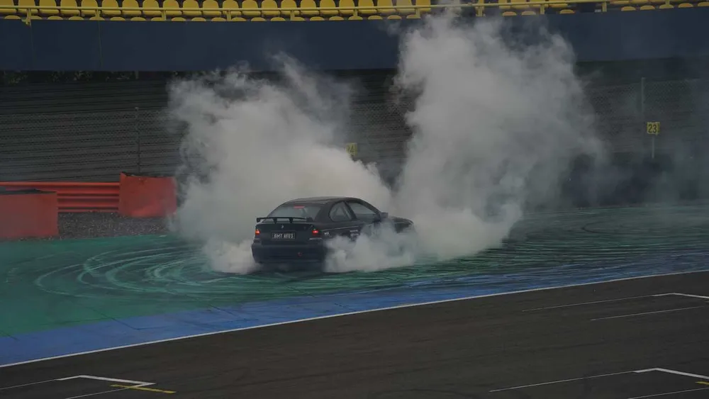 Bij binnenkomst kon men gelijk de tribunes op om driftende voertuigen te bekijken. Deze legden een parcours af, en dat ging met veel rondvliegend rubber en veel rook.