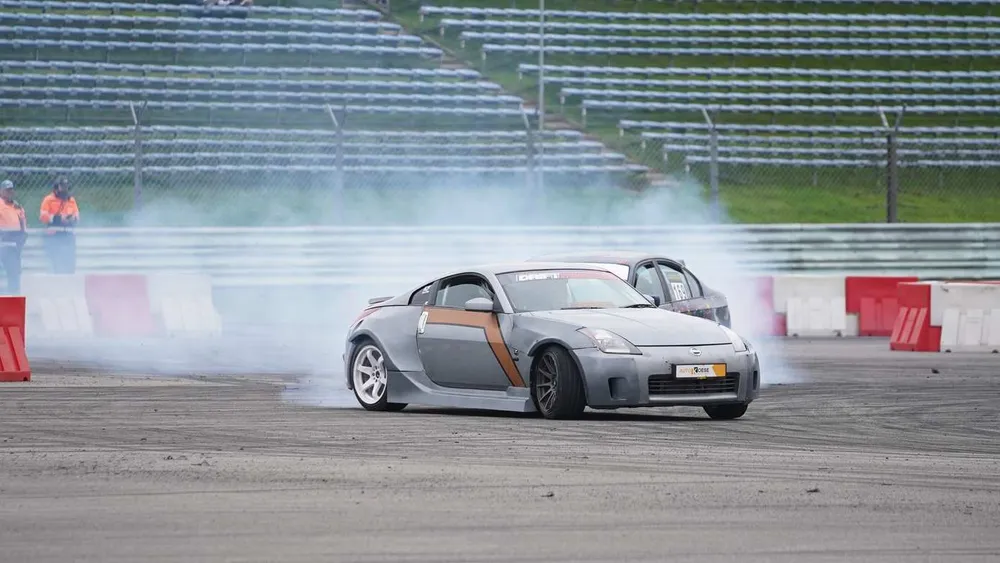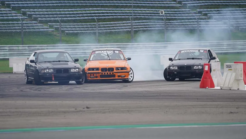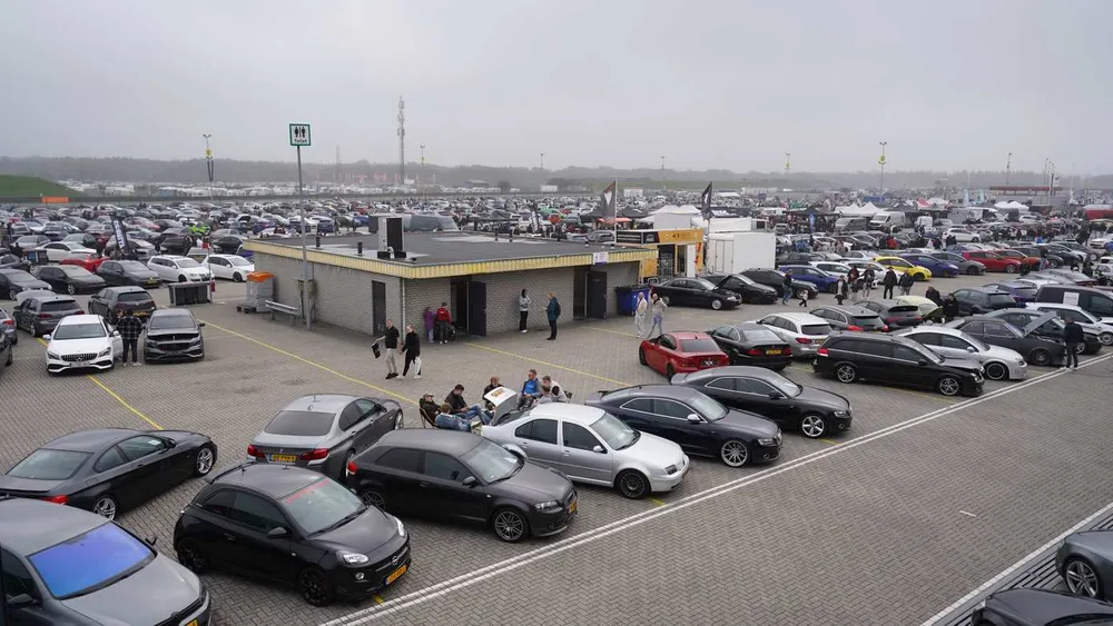 Van ver buiten de baan waren de ronkende uitlaten en de harde muziek te horen, en brandend rubber te ruiken.