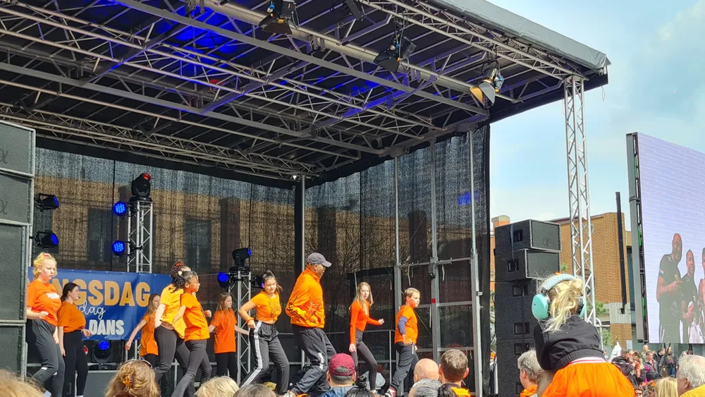 Op het Koopmansplein waren een groter en kleiner podia met verschillende optredens en dansshows.
